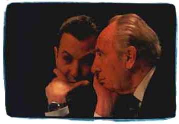עקרונית, היד עם השעון יכולה להיות ידו של פרס. עקרונית, היד בלי השעון יכולה להיות ידו של ברק. שתי הידיים, מכל מקום, נתונות בשרוולים לבנים. לכן, עקרונית, יתכן שהידיים המצולמות אכן אינן ידיהם של פרס ולא של ברק, אלא של אדם שלישי נעלם, השוכב או עומד מתחתם, אולי איש קצר-קומה במיוחד, לבוש חולצה לבנה, לעולם לא יגיע גבוה מספיק כדי להיות חלק מהתמונה, והוא, כל תפקידו בתיאטרון הזה, הוא להחזיק לשני האנשים האלה את הראשים בזמן שהם מדברים. לפעמים הוא חושב שהם מדברים עליו. הא! הדבר שהוא אינו רואה (אבל אנו יכולים לראותו), הוא שהאנשים האלה אינם מדברים כלל. פיותיהם סגורים. הם אפילו לא מביטים זה בזה: מבטיהם יוצרים זווית ישרה; הם שותקים כי הם יודעים משהו והם לא יגידו לנו אותו לעולם. לפעמים אני מרגיש כמו הגמד הזה.