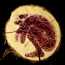 - בול עץ מנוסר או כרות, מחובר לשרשרת חלודה, ובתוכו דמות אדם. מסביב – חושך. מיהו האיש הזה? מה הוא עושה בתוך העץ? לאן מחובר העץ?