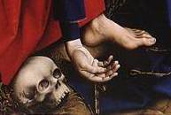 אבזמי חגורתה של מרים המגדלית מביטים כעיניים בפצעי הרגל. אזור המין הנשי מתבונן באזור המוות הגברי. עיני הגולגולת מביטות בידה השמוטה המעולפת של מרים האמא, וכמו פוצעות בה חורי עיניים כמו אלה של בנה, קרובות מאוד, מבשרות על העתיד. אבל הם גם קצת מביטות לכיווננו. זו ההזמנה אל הציור הזה: עיני גולגולת.
