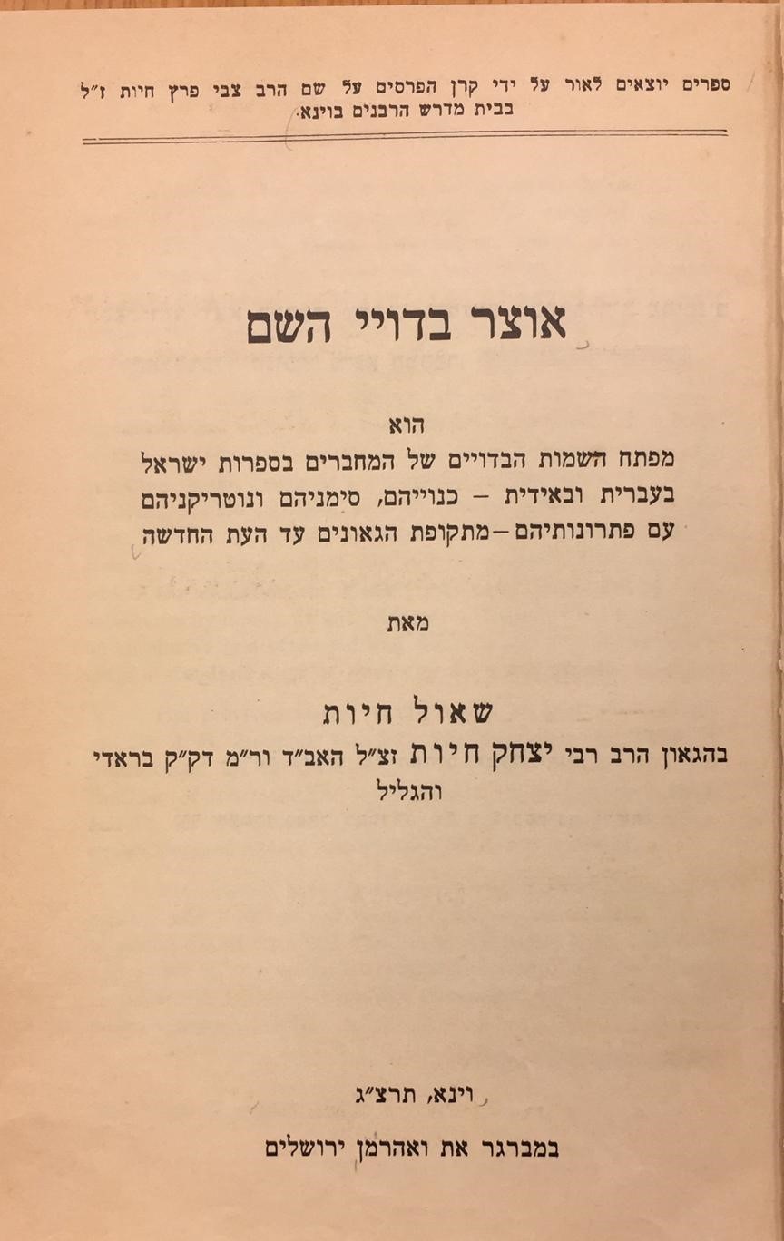 בספריה שמעל-הספרייה שמאחורי הספרייה מצאתי את "אוצר בדויי השם". ערך אותו שאול חיות (1884-1935) והוא פורסם בווינה ב-1933. הספר סרוק במלואו גם כאן. זהו לקסיקון של המחברים העבריים והידיים שפרסמו בשם בדוי מאז תקופת הגאונים ועד ימיו של העורך – כאלף שנה. מפעל ביבליוגרפי מטורף! מתברר כי השם הבדוי הוא תופעה נפוצה עד מאוד בספרותנו. מאות ואלפי כותבים בחרו לפרסם בשם בדוי. כיום מנהג נאה זה נקוט בידי מעטים בלבד, כמו א"ב יהושע, אלכס חנקין, בן פול או ס' יזהר. מקצת השמות הבדויים הם אטומים למחצה ומבעד להם מציץ השם הרשמי (כמו במקרה של יזהר ויהושע). כיום, רוב הסופרים יעדיפו לשרוף את כתב-היד, בפועל ממש, ולא לפרסמו בשם שאינו שלהם.