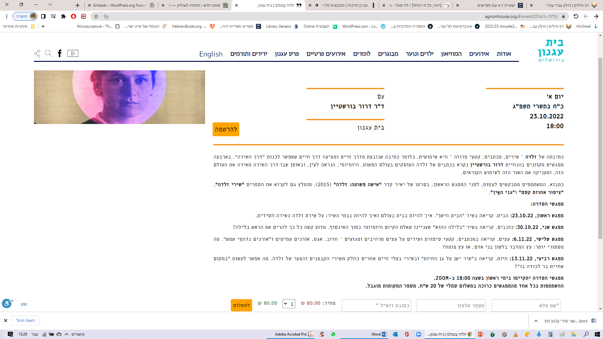 אחרי החגים (החל מ-23.10.22) אשוחח על זלדה במסגרת בית עגנון. ארבע פגישות שבועיות ב"זום", בתשלום סמלי. פרטים והרשמה כאן:
