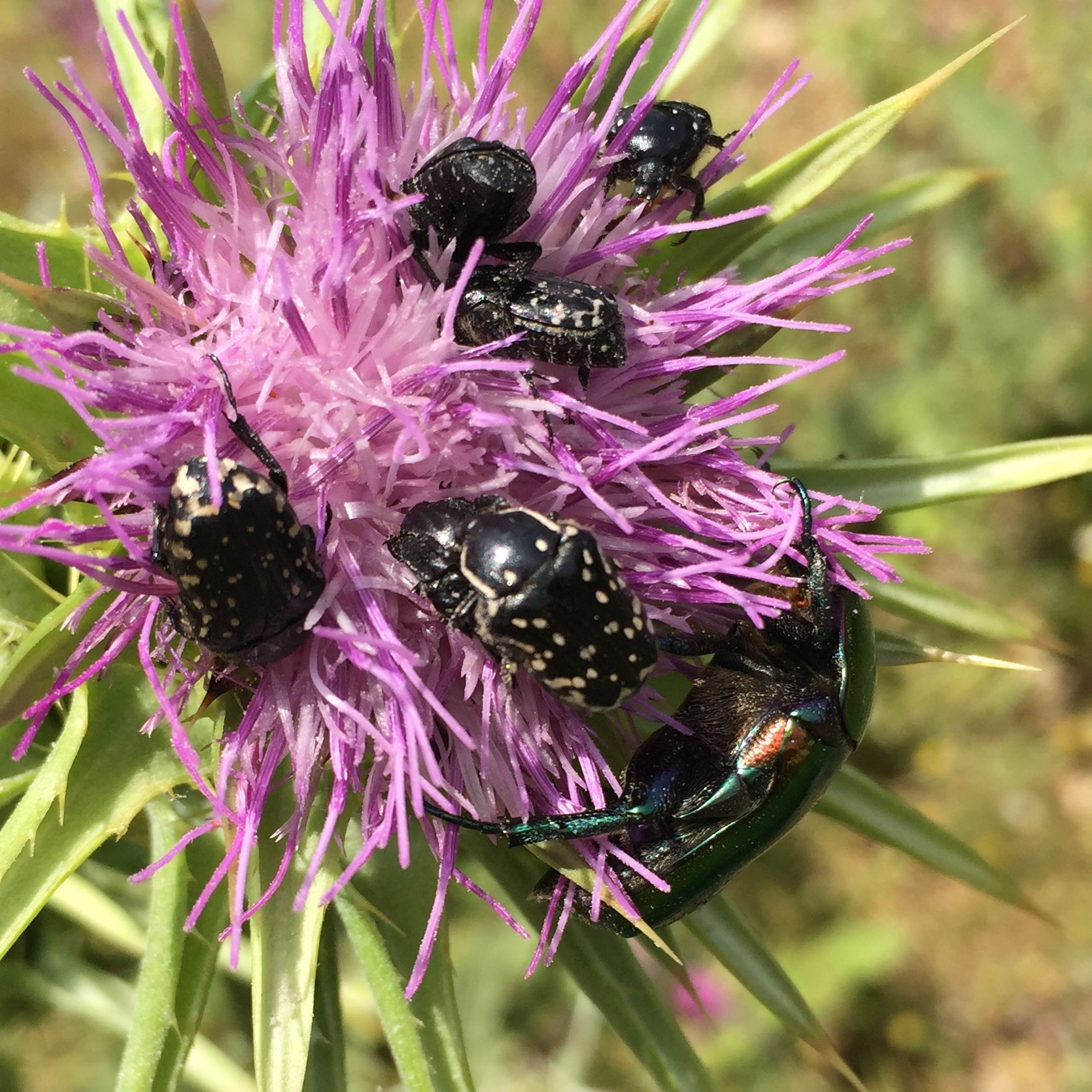 אני נזכר בשורה ״אני נושם שירה״ של המשורר היפני בסוף הסרט ״פטרסון״ של ג'ים ג׳רמוש. היפני יושב עם פטרסון, נהג האוטובוס, על ספסל מול מפלים ומעניק לו מחברת ריקה. היפני נפרד מפטרסון (האיש והעיר) בקריאת ״אהה!״ שהיא קריאת ההתגלות או ההתעוררות שמשוררים מתרגמים אחר כך למילים. אבל כאן, בתוך ההתרחשות החיה שאינה פוסקת, אפשר גם לשכוח מה״אהה!״, כי כאן הכול ״אהה!״. בעיר אתה מייחל לרגעים של התבהרות בתוך העכירות האופפת. לעומת זאת, כאן הכול גלוי. אין צורך לבודד את הציפור או את הפרפר או את זוג החיפושיות (פרחיות נעמי שחורות, זרועות נקודות לבנות, שנמצאות כאן במאות, תקועות, פשוטו כמשמעו, בחרציות) המזדווג על החרצית, או את הפשפש האדמוני המבחין בי וחומק כמשרת בריטי רב- טַקְט לצד השני של הפרח. העניין כאן אינו דבר זה או דבר אחר, אלא המכלול. לא פרי זה או זה של התאנה, אלא העץ כולו; לא העץ בניגוד לשדה החיטה, אלא המרחב הכולל; לא נגיסה אחת בלחם הטוב, אלא כל הכיכר. לא כל הכיכר אלא הכיכר, והחיטה, והשדה, והאדמה, והמים, והשמש השוקעת בקצב העתיק שלה, נפרדת מראשי השיבולים, שיהיו בחודש סיוון ללחם שאדם אחר יאכל.